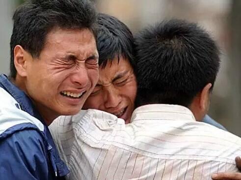 三位困在大山里三天的災(zāi)民,艱難跋涉三十多公里走出大山時(shí),情不自禁地抱頭痛哭。