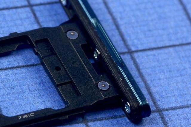 有別于前代 Xperia XZ1 的 SIM卡槽,索尼 Xperia XZ2 SIM 卡槽的防水膠圈和外蓋是通過(guò)螺絲固定在卡托上。