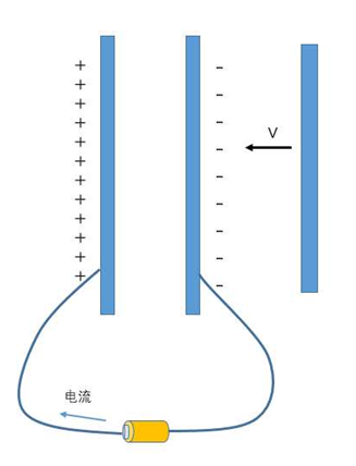 當(dāng)我們將兩片金屬板分別用導(dǎo)線(xiàn)連接電池的正負(fù)極時(shí),相當(dāng)于加上了電壓