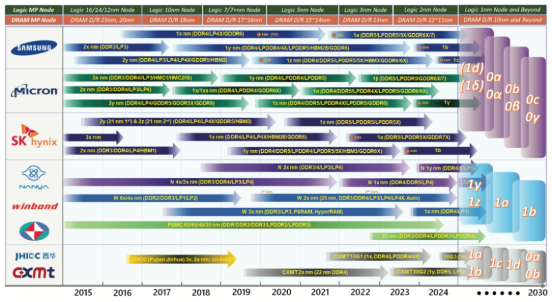 各大DRAM企業(yè)的研發(fā)進(jìn)展圖
